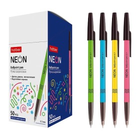 Ручка шариковая Hatber NEON Синяя 0,7мм Ассорти чернила на масл.основе в карт. Мини-Дисплее