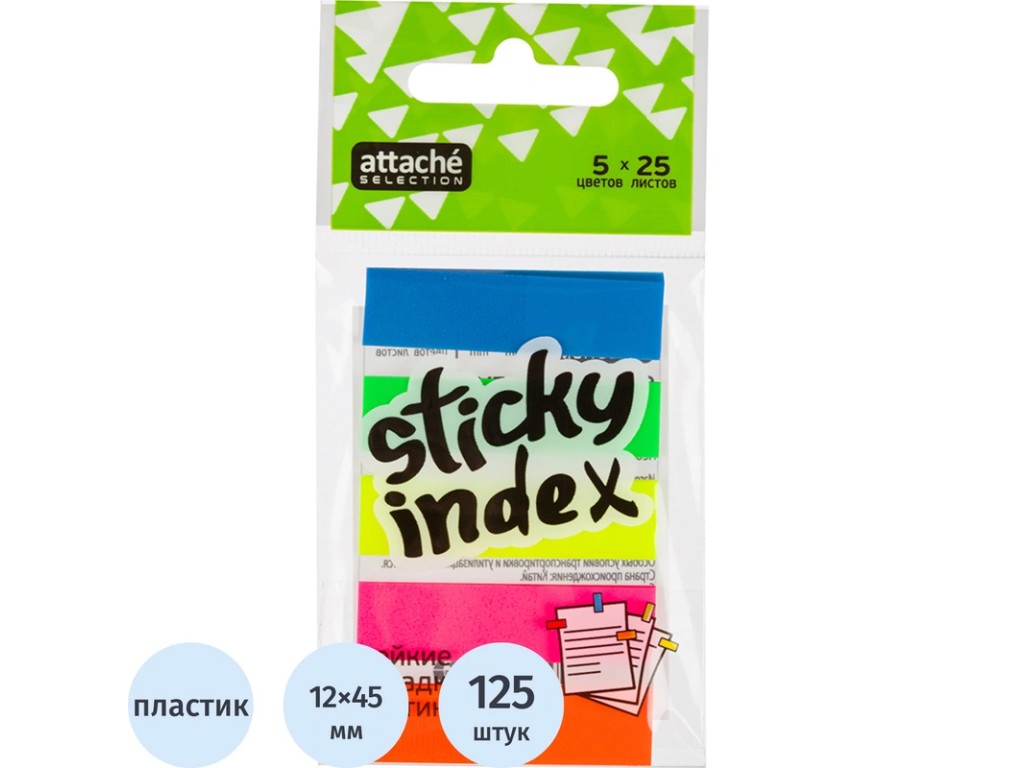Липкий блок-закладка Attache Selection пластик 12x45 мм, 5x25 л