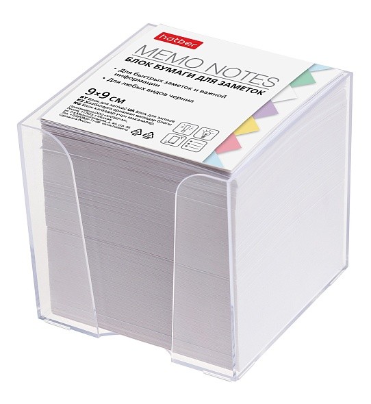 Блок для записей 9х9х9см Белый в пластик.боксе Хатбер