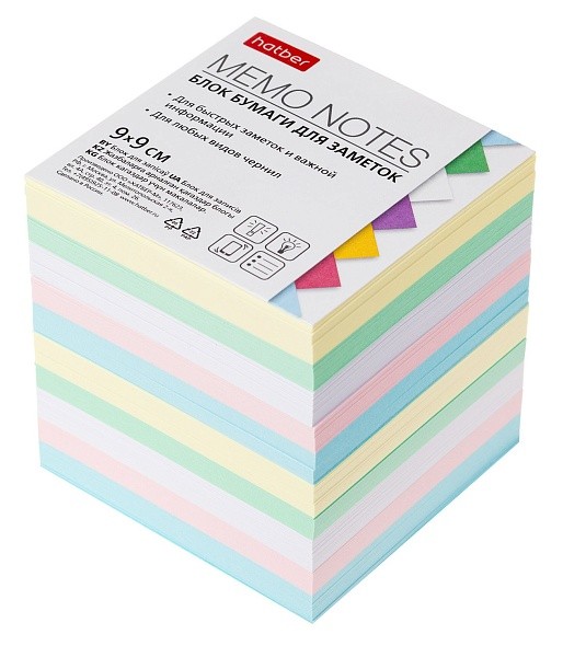 Блок для записей 9х9х9см цветной 5 цв. сменный в индив.упак.Хатбер