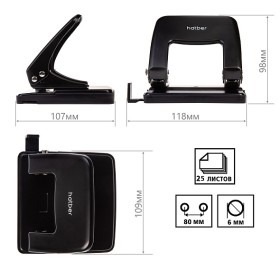 Дырокол Record Металлический 25л с линейкой Черный Хатбер
