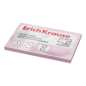 Блок самоклеящийся бумажный ErichKrause 75х50 мм, 100 листов, розовый