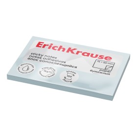 Блок самоклеящийся бумажный ErichKrause 75х50 мм, 100 листов, голубой