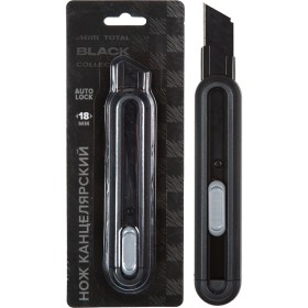 Нож канцелярский "deVENTE. TOTAL BLACK" 18 мм, 15,4 см, металлическое направляющее, черный корпус с серыми элементами, черное лезвие, автоматическая система фиксации лезвия, пластиковый блистер, с индивидуальной маркировкой