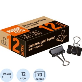 Зажим 19мм Hatber X-Mate черные в картонной коробке
