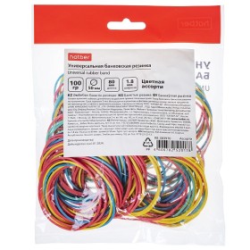 Резинки банковские Хатбер диаметр 50мм, длина 80мм, 100г цветные в пакете с европодвесом