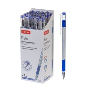 Ручка шариковая Hatber Byte Синяя 0,7мм чернила на масл.основе с резиновым грипом в карт. Мини-Дисп