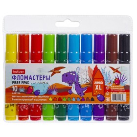 Фломастеры 10цв Хатбер JUMBO-XL утолщен.корпус ДИНОСАД в блистере с европодвесом