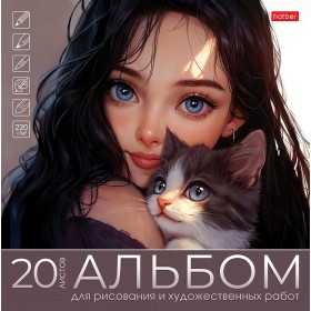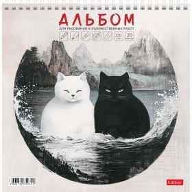 Альбом для рисования и художественных работ 20л А4 220х220мм 220гр гребень тв.подл мат лам Коты Инь