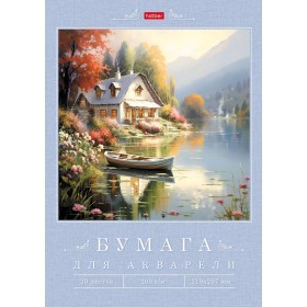 Папка для акварели А4, 20л, 200гр тиснение Дом у озера Хатбер