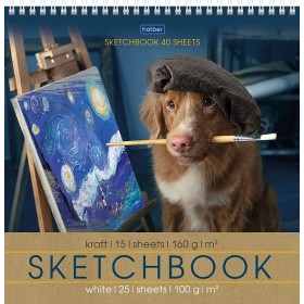 Скетчбук 40л (15л крафт 160г +25л бел офсет 100г) гребень 240х240мм б/лин тв.подХудожник по имени Га