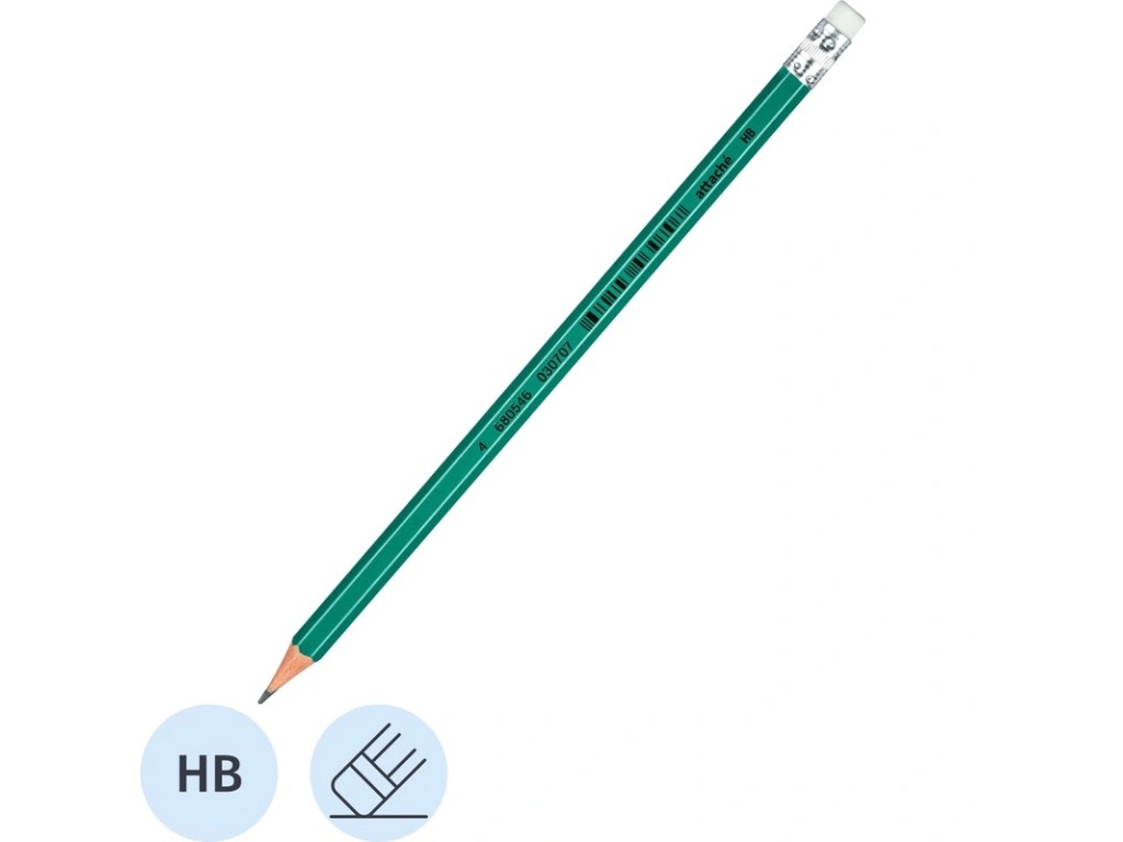 Карандаш ч/г Attache HB, пластиковый зеленый, с ластиком