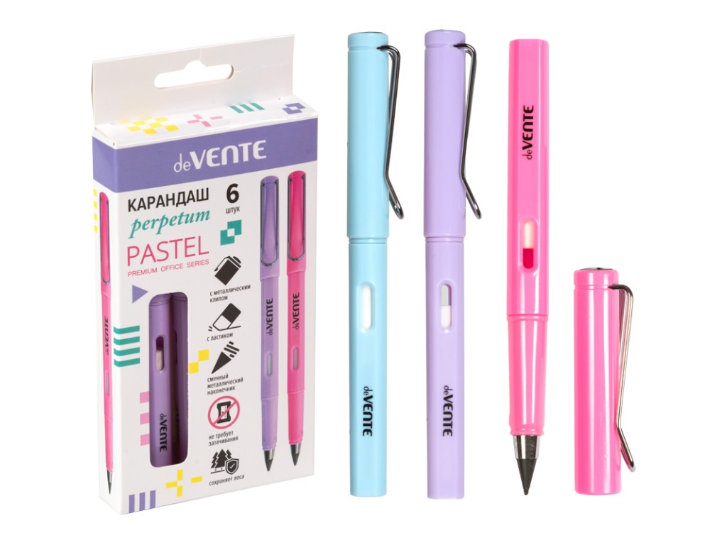Карандаш подарочный механ deVENTE Perpetum Pastel "вечный" наконечник, ластик внутри, 3цв корпуса