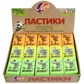 Ластик Луч ZOO, Z2 прямоугольный, 35х25х8мм флюорисцентный ассорти