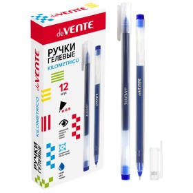 Ручка гелевая deVENTE Kilometrico 5 мм, синяя УВЕЛИЧЕННЫЙ объём чернил, длина 1200 м, прозрачный ко