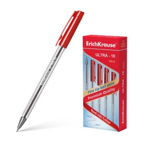 Ручка шариковая ErichKrause ULTRA-10 Stick Classic 0.7, Super Glide Technology, цвет чернил красный (в коробке по 12 шт.)