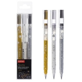 Набор ручек гелевых 3цв Хатбер Aura 0,8мм(золото, серебро, белая) в инд.упак.с европодвесом