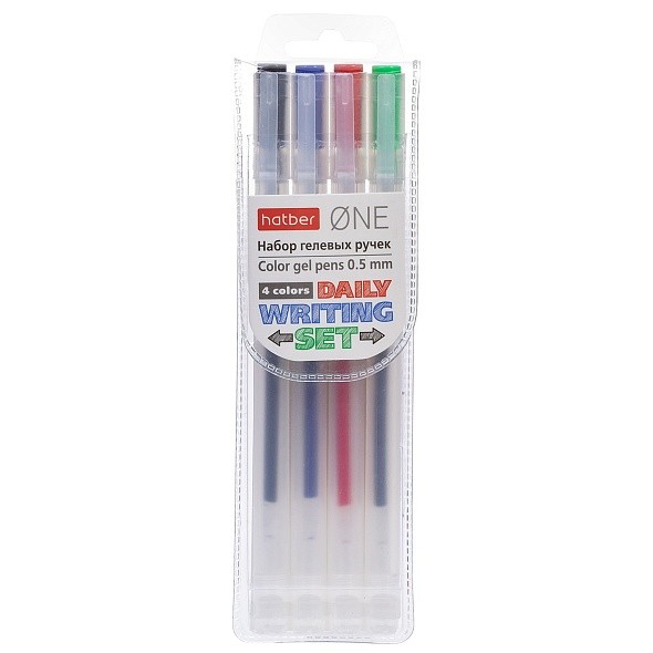 Набор ручек гелевых 4цв Хатбер One 0,5мм в пластиковом пенале с европодвесом