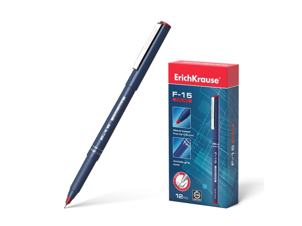 Ручка капиллярная ErichKrause F-15 Stick Classic, цвет чернил красный