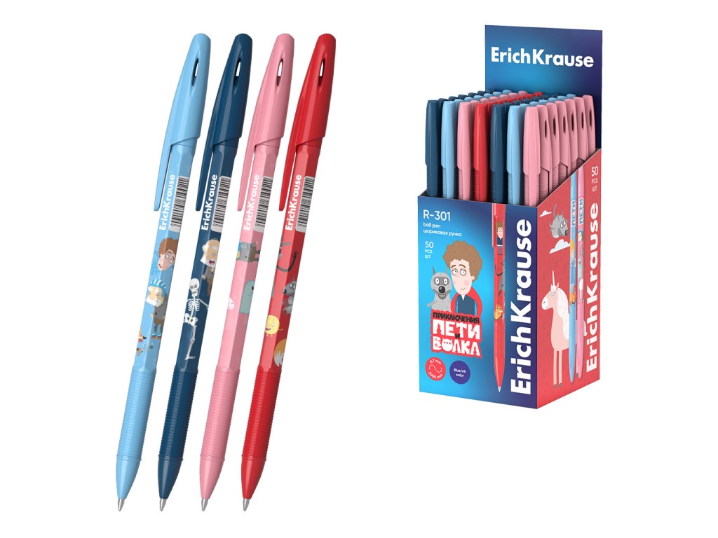 Ручка шариковая ErichKrause R-301 Stick&Grip Приключения Пети и Волка 0.7, цвет чернил синий (в коробке по 50 шт.)