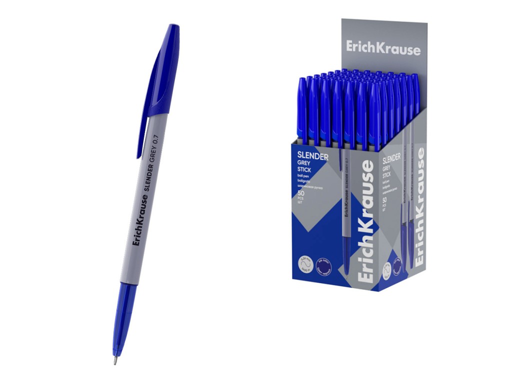 Ручка шариковая ErichKrause SlenderR Stick Grey 0.7, Super Glide Technology, цвет чернил синий