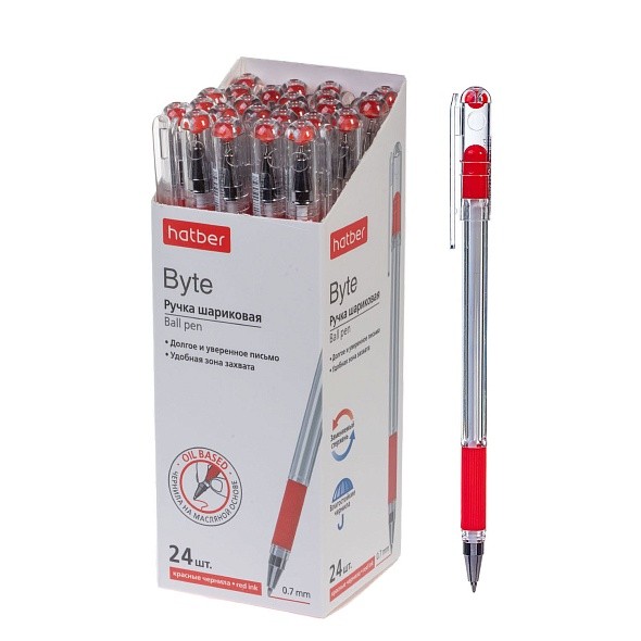Ручка шариковая Hatber Byte Красная 0,7мм чернила на масл.основе с резиновым грипом Мини-Дисп