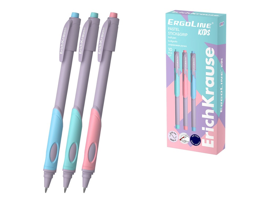 Ручка шариковая ErichKrause ErgoLineR Kids Stick&Grip Pastel 0.5, Super Glide Technology синяя