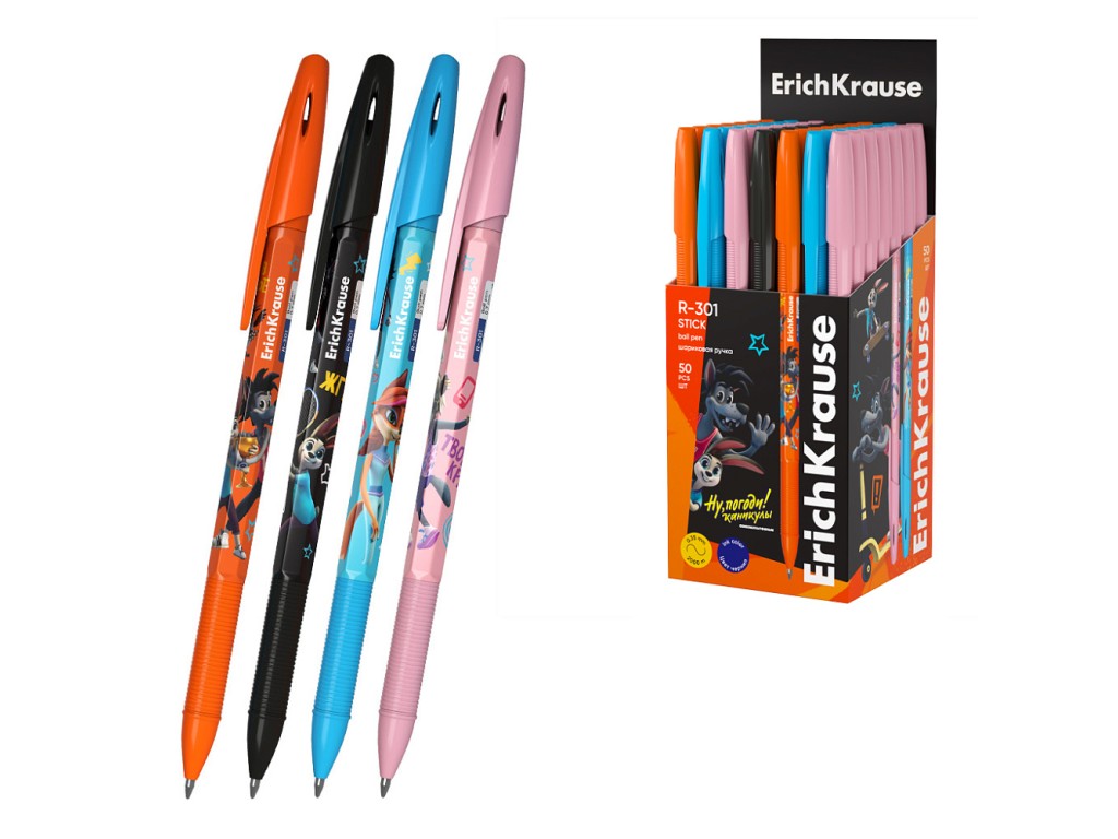 Ручка шариковая ErichKrause R-301 Stick Ну, Погоди! Каникулы 0.7, цвет чернил синий