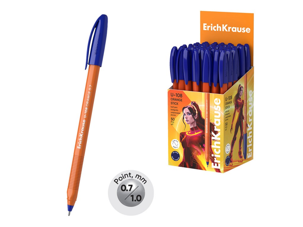 Ручка шариковая ErichKrause U-108 Stick Orange 0.7, Ultra Glide Technology, цвет чернил синий