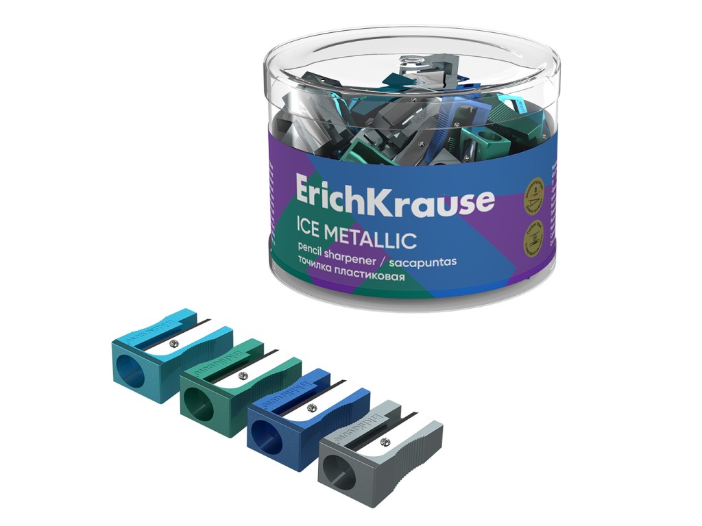 Точилка ErichKrause EasySharp, Ice Metallic, пластиковая ассорти в тубус
