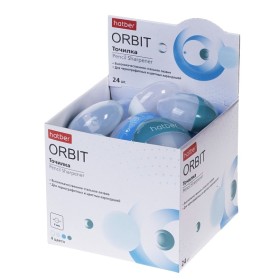 Точилка Хатбер ORBIT пластиковая с контейнером Ассорти 4 цв. в картонной Дисплей-витрине