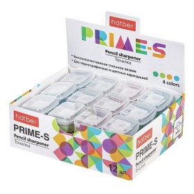 Точилка Хатбер PRIME-S пастиковая с контейнером Ассорти 4 цв. в картонной Дисплей-витрине
