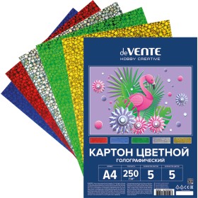 Картон цветной 5цв 5л А4 deVENTE 250 г/м2 голографический, пластиковый пакет с европодвесом