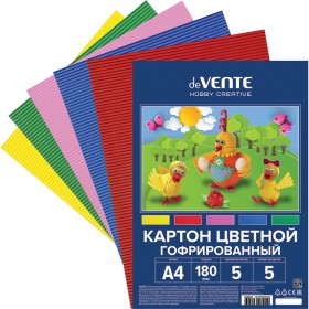 Картон цветной 5цв 5л А4 deVENTE 180 г/м2 гофрированный, пластиковый пакет с европодвесом