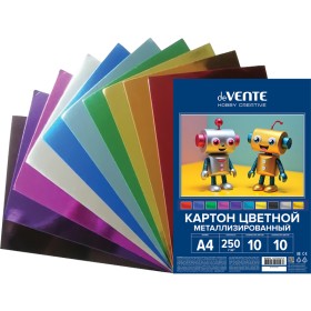 Картон цветной 10цв 10л А4 deVENTE 250 г/м2 металлизированны, пластиковый пакет с европодвесом