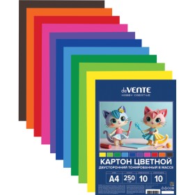 Картон цветной 10цв 10л А4 deVENTE 250 г/м2 тонированный двусторонний, пластик пакет с подвесом