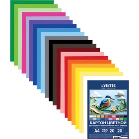 Картон цветной 20цв 20л А4 deVENTE 250 г/м2 тонированный двусторонний, пластик пакет с подвесом