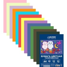 Бумага цветная 12цв 12л А4 deVENTE тонированная двусторонняя 80 г/м2, в пластик