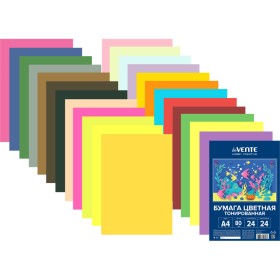 Бумага цветная 24цв 24л А4 deVENTE тонированная двусторонняя 80 г/м2, в пластик