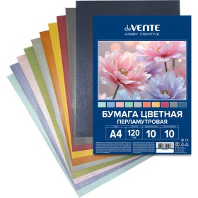 Бумага цветная 10цв 10л А4 deVENTE перламутровая, 120 г/м2, пластик пакет с подвесом