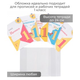 Обложка для прописей Горецкий 1 кл. и раб.тетр. Моро,Канакина 1кл. 243х455мм, универсальная,ПВХ110мк