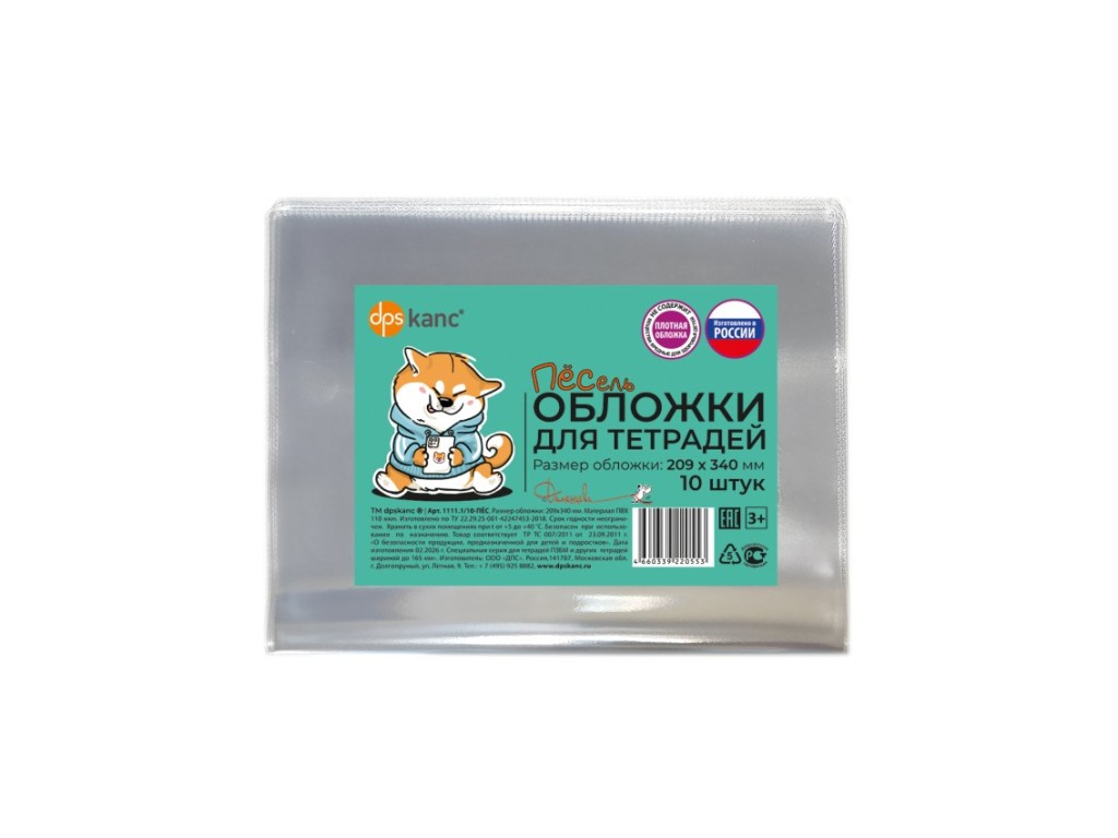 Обложка для тетрадей 209х340мм, ПВХ110мкм, 10шт. в компл., серия Пёсель