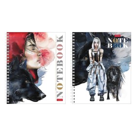 Тетрадь 96л клетка гребень Хатбер Девушка-волк 60-65г/кв.м мат ламин, тиснние 2 диз.