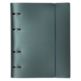 Тетрадь 120л 4 кольца Пластиковая обл с высечкой под кольца на резинке METALLIC Темно-синий Хатбер