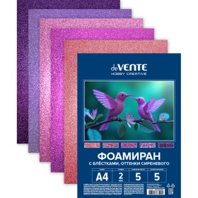 Фоамиран цветной с блёстками A4 "deVENTE. HOBBY CREATIVE. Оттенки сиреневого" 5 цв, 5 л, толщина 2 мм, пластиковый пакет с европодвесом
