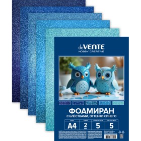 Фоамиран цветной с блёстками A4 "deVENTE. HOBBY CREATIVE. Оттенки синего" 5 цв, 5 л, толщина 2 мм, пластиковый пакет с европодвесом