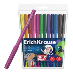 Фломастеры 12цв ErichKrause Приключения Пети и Волка, в футляре с европодвесом