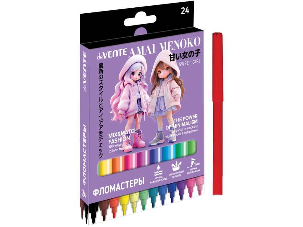 Фломастеры 24цв deVENTE Amai Menoko с вентилируемым колпачком, в картонной коробке с подвесом