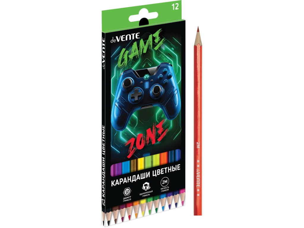 Карандаши 12цв deVENTE Gamer 2М, диаметр грифеля 2,8 мм, шестигранные, в картонной коробке