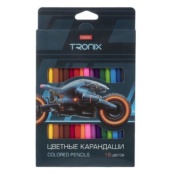 Карандаши 18цв Hatber TRONIX трехгран.корпус заточен. в карт. короб. с европодвесом